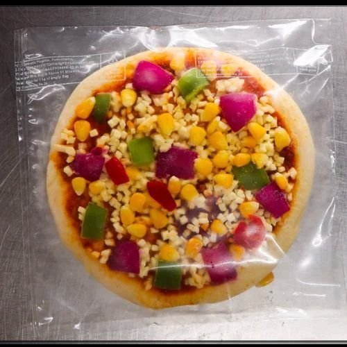 Enjoy a delicious Frozen Veg Pizza, FSSAI Certified and made in India. This vegetarian delight has a shelf life of 12 months and contains artificial preservatives for lasting freshness. Simply keep it frozen until ready to bake for a convenient and tasty meal option.